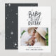 Bébé son froid dehors typographie carte de vacances de Noël photo. Texte écrit à la main, neige, étoiles et design. Idéal pour la décoration mariage, les baby showers, les fêtes de Noël et de nouvelle année, les fêtes d'anniversaire et les événements d'hiver généraux.
