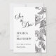 This beautiful floral Save the Date features black and white floral with beautiful calligraphy script on the front and a photo of the couple on the back. To customize, simply click "Personalize This Design," upload your photo, and enter your details. Zazzle will take care of the rest.