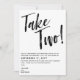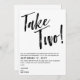 Charming mariage reporté enregistrer la nouvelle carte de date en blanc avec du texte noir. Take Two ! est écrit dans un script de brosse sur le dessus de la carte. Écrivez votre nouvelle date de mariage et des informations supplémentaires sous une police moderne.