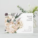 Nous avons conçu cette Flore Blanche horizontale enregistrer la date pour compléter votre mariage tropical foncé rustique. Avec son aquarelle bohème verdoyante et ses fleurs d'hiver boho modernes, dont la protéa, la dahlia et le lotus séché, le design est sûr de mettre en valeur votre moody, minimaliste vert et blanc thème. Modifiez le texte et ajoutez une photo pour en faire votre propre. Assurez-vous également de parcourir le reste de la collection pour trouver des éléments de coordination qui rassembleront votre mariage entier! https://www.zazzle.com/collections/white_floral_collection-119896729923706651