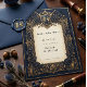 Faites une annonce grandiose avec cette carte "Save the Date", une fusion parfaite entre l'héraldique médiévale et le charme céleste. La palette de couleurs bleu marine profond et or opulent crée une atmosphère luxueuse et sophistiquée, tandis que le blason central avec épées croisées et volutes ornées évoque un sentiment d'élégance intemporelle. Ornée de motifs célestes subtils et de fioritures florales détaillées, cette carte est conçue pour impressionner. C'est un moyen inoubliable d'informer vos invités de la date de votre mariage, préparant le terrain pour une célébration imprégnée de romance et d'attrait historique.