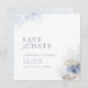 Elégant sous la mer thème plage enregistrer la carte de date comprend corail et coquillages couleur bleu poussiéreux, script élégant et détails de police classe, moderne et romantique, idéal pour le mariage de plage d'été sur le thème de la mer, mariage de destination tropicale d'hiver, mariage sur le thème de l'océan côtier. Voir toutes les pièces correspondantes dans la collection.
