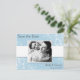 Enregistrez les cartes Date avec un défilement floral bleu et blanc clair autour de votre photo.
