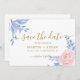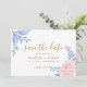Save The Date Bleu Dusty Élégant rose Floral Rustique Mariage