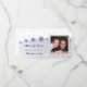 Mariage de flocon blanc gris bleu argenté Save the Date carte photo, avec une bande ondulée en gris argenté avec des étoiles et des flocons de neige bleus élégants. Texte en bleu. Un design élégant parfait pour vos mariages d'hiver, de décembre ou de Noël. Moderne et contemporain mais adapté pour un mariage traditionnel. Ce design élégant et élégant peut être utilisé pour d'autres occasions spéciales comme des fiançailles ou des anniversaires.