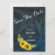 Save The Date Bleu Nuit & Tournesols Géométriques Dorés