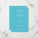 Magnifique bleu océanique "Save the Date" qui est parfait comme prélude à votre invitation formelle pour tous vos invités. Fait avec de belles polices en blanc simple et élégant. Parfait pour votre occasion spéciale. Une belle Save the Date pour votre mariage sur la plage.