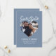 Carte de mise en vente avec photo de couleur bleu poussiéreux avec un script moderne mettant en vedette une photo centrée en forme de cœur, un fond bleu doux et poussiéreux, et un titre en écriture blanche. Ce design met en valeur votre photo de fiançailles tout en présentant clairement les noms, la date et le lieu dans une mise en page propre et équilibrée qui se sent à la fois moderne et intemporelle. Idéal pour les mariages, les célébrations de destination, les renouvellements de vœux ou les fiançailles officielles où une annonce imprimée classique est préférée. Personnalisez facilement avec vos détails.