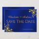 Cartes de sauvegarde de date de style classique avec fleurs dorées jaunes et bleues royales. Personnalisez avec vos propres noms et date spéciale.