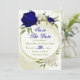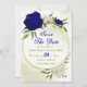 Magnifique enregistrer la carte de date avec des fleurs bleues et blanches royales et des feuilles verts sur un cadre géométrique or élégant Les détails de la parties scintillant d'or sont simulés. POUR PLUS DE PRODUITS CORRESPONDANTS cliquez sur la collection ci-dessus ou contactez-moi