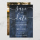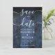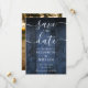 Cette élégante carte bleue rustique mariage en bois de grange sauvez la date peut être personnalisée avec vos informations dans la typographie chic et une photo spéciale au verso. Conçu par Thisisnotme©