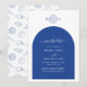 A simple blue clam monogram coastal wedding design. A seaside beach design that uses a sketch of a clam and seashells to create an elegant classic monogram. A charming blue and white coastal beach design with rustic strokes and classy script typography. An elegant seaside clam beach themed wedding save the date card design with modern elements. Matching wedding stationery items and other wedding invite formats are also available.