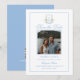 Blue Hydrangea Crest Monogram, save the date is vintage-inspired soft blue and white design that's perfect for a garden or coastal-themed wedding. The save the dates features an elegant light blue color typography design style mix of script and bold type. Solid light blue backing with a matching envelope that has blue and white hydrangea details to tie it all together. You can easily customize this design with your details. Happy planning!