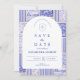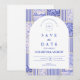 Save The Date Blue White Patchwork Toile Wedding