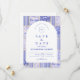 A timeless blue and white design inspired by classic Delft porcelain and French toile patterns. The patchwork tile border combines delicate florals, stripes, and ornamental motifs that evoke vintage European ceramics. A soft arched panel in the center keeps the layout refined and elegant while allowing the details of the porcelain-inspired pattern to frame the celebration beautifully. Perfect for couples planning a sophisticated blue and white wedding with traditional European charm.