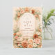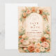 A romantic blush and peach floral design framed by a soft watercolor arch of roses, garden blooms, and airy pampas accents. Warm neutrals and muted sage greenery create an elegant, timeless aesthetic with a subtle western touch from the hat and rope detail. The composition feels refined yet natural — perfect for a boho western celebration, ranch wedding, or romantic garden ceremony. Fully customizable with your names and event details.