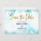 Save The Date B'nai Mitzvah Turquoise Aquarelle Gold Script