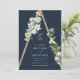 Une belle pyramide de bois rustique de style bohème avec des flancs d'aquarelle blancs en cascade sur le côté et un arrière - plan bleu. Un design unique qui utilise des plantes vintages d'aquarelle blanche sur une structure triangulaire bohème. Un charmant design floral blanc aux caractéristiques rustiques et géométriques et à l'élégante typographie de script. Un mariage élégant enregistrer la conception de la carte de date avec des éléments modernes. Des invitations de mariage et d'autres articles de papeterie sont également disponibles.
