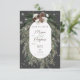 Ce design comprend un bouquet rustique de pin vert et de pinecone sur un arrière - plan au charbon de bois avec des fleurs blanches. Il est agrémenté d'une couverture brillante blanche pour illustrer la magie des belles vacances d'hiver. Parfait pour un mariage de Noël ou d'hiver. Cette carte fait partie de la Suite de Mariage Boho Green Pine Winter Sparkle créée par Simply Farmhouse Press.