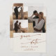 Ce boho chic crème bohème multi photo code QR enregistrer la carte date est parfait pour un mariage minimaliste. Le design bohème moderne en terre cuite neutre orangée et crème présente une calligraphie rustique simple au style unique mais classique. Personnalisez votre enregistrement de la date avec vos noms, date du mariage, emplacement, 4 photos de fiançailles et un code QR qui renvoie à votre site Web mariage.