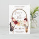 Votre célébration bohème peut être rustique et élégante en même temps. Ce magnifique modèle de Save the Date présente le meilleur des deux mondes. Avec de belles fleurs aquarelles en rose blush, rose burgundy et pêche délicieuse ornant un attrape-rêves bohème avec des plumes et des fleurs, ce design est sûr d'exciter vos invités dans l'attente de votre grand jour. Correspond à d'autres modèles de notre boutique pour créer une suite complète et est entièrement personnalisable pour n'importe quelle occasion ! Peut être utilisé pour un mariage, un anniversaire, une douche de mariée ou une baby shower, une remise de diplôme ou tout autre grand événement !