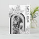 Élégantes cartes de mariage bohème pour annoncer la date, avec une photo en noir et blanc des mariés sous une arche monochrome, feuilles de palmier séchées du désert aquarelle, herbe de pampa, florales botaniques et un modèle simple pour enregistrer la date.