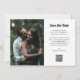 Ce mariage à la mode et vintage style enregistrer les cartes de date comporte un script blanc rétro sur le devant comme une superposition sur votre photo. Le dos a un arrière - plan noir et blanc, et une autre photo, avec un code QR scannable pour ajouter votre site mariage.