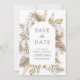 Éblouissez vos invités avec cet élégant enregistrer la date avec de belles pampas herbe et fleurs blanches avec typographie moderne. Ajoutez simplement les détails de votre événement sur ce modèle facile à utiliser pour en faire une carte unique de sauvegarde de la date.