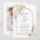 Ce mariage sauve la date invitation caractéristiques de l'aquarelle peinte protéa, orchidées blanches, herbe pampa sèche, anthuriums blancs, fleurs sauvages, feuilles exotiques avec un cadre d'arc et une photo sur le dos. Pour une personnalisation plus avancée de cette conception, cliquez sur le lien "Customiser plus loin". Des articles correspondants sont également disponibles.
