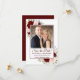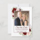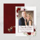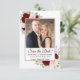 Ce magnifique mariage boho chic floral sauvegarder les cartes dattes de votre photo entourée de roses d'aquarelle peints à la main et de fleurs dans les tons rouge, bordeaux et rose roux. La légende indique : Enregistrer la date dans des lettres de script élégantes. Il y a de l'espace pour vos noms, la date et l'emplacement du mariage ci-dessous. Le dos est une couleur bordeaux marbrée profonde avec un amas de mêmes fleurs. Merveilleuse façon de faire connaître votre prochain mariage à vos amis et à votre famille.