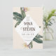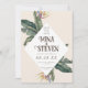 Le Tropical Geometry Banana Feuilles Wedding Save the Date présente un design moderne avec des motifs géométriques et des feuilles de bananes dynamiques, parfait pour annoncer votre journée spéciale avec style contemporain et ambiance tropicale.