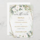 Save The Date Boho Vert eucalyptus fleurs de roses blanches