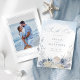 This lovely ethereal ocean themed dusty blue wedding photo save the date card is perfect for summer beach destination weddings. The coastal chic watercolor design has a variety of delicate coral, starfish and seashells framing elegant stylish text with a modern script calligraphy font.