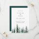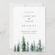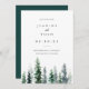 Elégant mariage d'hiver enregistrer les cartes de datation disposent d'un lettrage doux hors-noir avec une bordure inférieure de chasser vert aquarelle pins. Choix chic pour les mariages d'hiver en forêt, en montagne ou en bois, ces appartements élégants, sauf les cartes de dates sont faciles à customiser avec vos noms, date mariage, emplacement mariage, site Web ou une indication qu'une invitation formelle suivra.