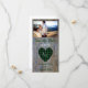 Mariage en bois rustique monogrammed photo Enregistrer la Date annonces - Photo couple personnalisée en haut. Le coeur rustique et vert du buffle plaid a des initiales monogrammées de la mariée et du marié. Lit Enregistrer la date ci-dessous photo dans élégant script vert avec effet d'ombre et date mariage. Noms de mariée et de mariée personnalisés en bas avec ombre portée, en lettres vertes assorties. Avec la photo en bois rustique arrière - plan de grains de bois cicatrisés et en détresse. Convient aux mariages rustiques, aux mariages de grange, aux thèmes de boho mariage et aux mariages des forêts boisées. Idéal pour la douche nuptiale rustique ou la fête d'anniversaire des mariages de l'ouest du pays.