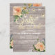 Enregistrer la date Faire-part de mariage Modèles - Faux Gold Foil Script avec Peach White Roses Floral et String Lights sur Arrière - plan de bois rustique. Un Design Parfait Pour Votre Grand Jour ! Tous Les Style De Texte, Couleurs, Tailles Peuvent Être Modifiés En Fonction De Vos Besoins.
