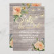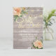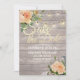 Enregistrer la date Faire-part de mariage Modèles - Faux Gold Foil Script avec Peach White Roses Floral et String Lights sur Arrière - plan de bois rustique. Un Design Parfait Pour Votre Grand Jour ! Tous Les Style De Texte, Couleurs, Tailles Peuvent Être Modifiés En Fonction De Vos Besoins.