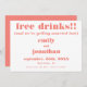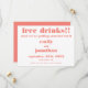 Un design humoristique de typographie audacieux pour invitation vos invités pour sauver votre date mariage. Entièrement personnalisable. Le texte centré est dans le corail, avec l’en-tête, "Boissons gratuites" suivi du slogan, Et nous nous marions aussi, vos noms, la date et l’emplacement du mariage. Un arrière - plan corallien correspondant se trouve à l'arrière et vous pouvez changer de couleur si vous le souhaitez via l'option Customiser plus.