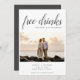 Destination plage à l'exception des cartes de dates sont pour le couple amusant qui ne peut pas attendre de partager leur date mariage avec leur famille et leurs amis. Drôle "Boissons gratuites (et nous nous marions) design en script gris est customisé avec votre photo, noms, date mariage et emplacement.