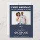 Décontracté style fun en marine cool et blanc pour faire connaître à vos invités pour enregistrer la date pour votre mariage. Entièrement personnalisable. Script gras en haut Free Drinks! ! ! avec slogan (oh et un mariage sur le côté) en dessous, et ajouter une photo préférée de vous deux! Remplacez simplement l'exemple de photo dans l'espace réservé modèle par le vôtre et personnalisez le texte à vos détails.