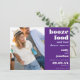 Invitation vos invités à enregistrer votre date mariage dans le style humoristique avec ce design amusant qui est entièrement personnalisable. Le texte est entièrement aligné à droite, avec une typographie blanche en gras en haut, Booze Food suivi de And Bad Dance Moves in lilas, vos noms, date mariage et emplacement dans un mélange des deux couleurs, sur un arrière - plan violet. Personnalisez facilement le texte et téléchargez simplement votre photo préférée de vous deux pour remplacer l'exemple. Un arrière - plan lilas de coordination se trouve à l'arrière et vous pouvez changer de couleur si vous le souhaitez via l'option Personnaliser supplémentaire.