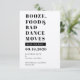 Mariage amusant et chic "Booze, Food, and Bad Dance Moves" sauvegarder la date. Personnalisez en remplaçant le texte.