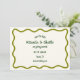 Cette conception est composée d'une bordure ondulée simple, fantaisiste et dessinée à la main. La police utilisée pour le texte principal est décontractée et ludique, avec une qualité manuscrite, lui donnant une touche personnelle et intime. Utilisez cette conception si vous voulez donner la priorité à une image conviviale et accessible à votre mariage plutôt qu'à la formalité.