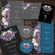 Notre suite de faire-part de mariage gothique est parfaite pour les couples qui recherchent une esthétique sombre et moody. Le bouquet floral à l'aquarelle est orné de fleurs violettes, violettes et indigo, aux roses blanches, donnant à la suite un aspect audacieux et spectaculaire. L'arrière - plan de couleur foncée rend les couleurs pop et crée un contraste saisissant.