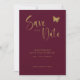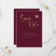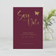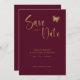 Save The Date Bourgogne et Or Script: Papillon Pailleté Mariage