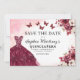 Annoncez votre quinceañera en style avec l'Invitation d'Anniversaire de la Bourgogne Florale. Ce design élégant présente de riches teintes bordeaux, ornées de délicats accents floraux, parfaits pour une célébration intemporelle et royale. L'agencement sophistiqué fournit tous les détails importants, assurant que vos invités marquent leurs calendriers pour votre journée spéciale. Associées à l'or ou à d'autres couleurs, les tons bordeaux évoquent un sentiment de romantisme et de grandeur. Donnez le ton à votre quinceañera avec cette merveilleuse oeuvre de sauvegarde de la date, s'assurant que votre événement est un à retenir.