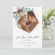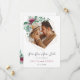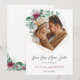 Cette carte élégante et moderne "Save Our New Date" est le moyen idéal pour informer vos invités d'un changement dans vos plans de mariage. Elle présente une photo personnalisable du couple encadrée dans un contour géométrique doré chic, ornée d'une belle composition florale aquarelle dans des tons de bordeaux, de pourpre et d'ivoire. Le design utilise une combinaison d'écritures stylisées et de polices classiques pour mettre en valeur les noms et la nouvelle date de mariage. Cette carte offre un moyen personnel et de bon goût de communiquer une mise à jour, mêlant des florales romantiques à une esthétique géométrique contemporaine. Elle est idéale pour un thème de mariage champêtre, rustique ou sophistiqué.