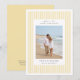 Annoncez votre mariage imminent avec ces élégantes cartes de sauvegarde de date conçues par Redwood and Vine Design Co, avec une photo verticale sur un fond classique à rayures fines dans des tons jaune beurre doux et blanc immaculé. Personnalisez le verso avec du texte supplémentaire et un code QR personnalisé menant à votre site web de mariage pour plus d'informations.