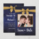 Arrière - plan bleu foncé superbe attaché avec une image d'arc or. La papeterie est imprimée, pas de ruban réel. Personnalisez notre superbe papeterie avec vos détails de l'événement facilement et rapidement, appuyez simplement sur le bouton customiser. La coordination à l'envers est incluse. Les articles correspondants pour compléter votre collection d'événements sont disponibles dans notre boutique Zazzle!