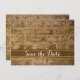 Annoncez vos prochaines noces avec la charmante carte d'annonce d'enregistrement de mariage à sauvegarder Briques Chic Industriel. Cette carte de conservation de date de mariage sur mesure de style chic urbain rustique présente une photographie rapprochée pittoresque d'un vieux mur de briques brun tonifié et patiné. Parfait pour donner le ton à un thème de mariage inspiré d'un entrepôt vintage ou d'un loft industriel décontracté mais chic.
